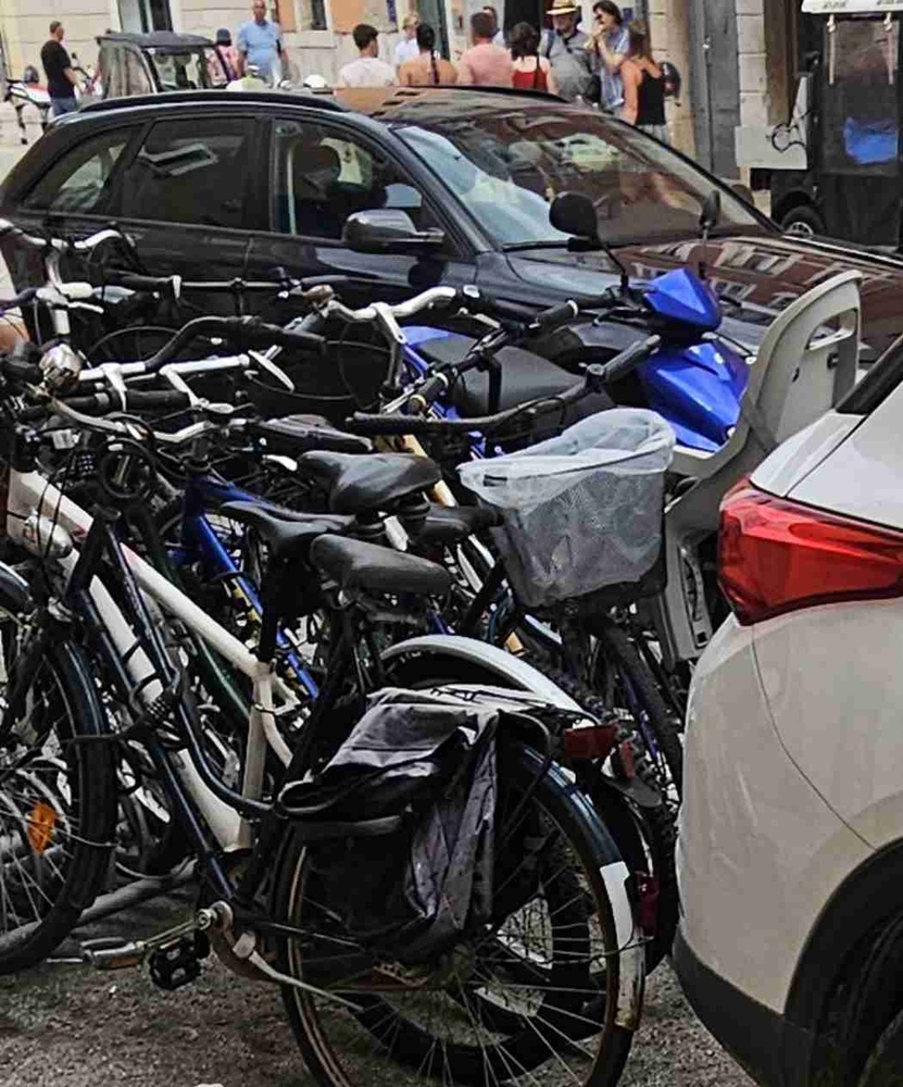Hvala vozačima koji su odlučili parkirati automobile tik uz bicikle — zaista je divno znati da ste uspjeli spojiti Tetris i prometnu (ne)kulturu u jedno umjetničko djelo. Bicikl sada mogu izvaditi jedino ako ga teleportiram.