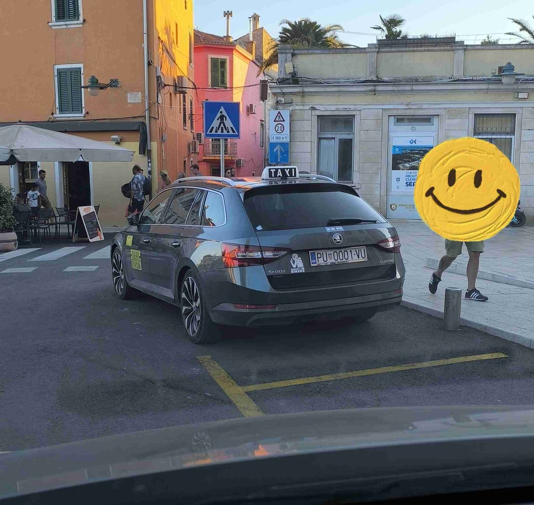 Moguće je da taj taksist, zajedno s nekolicinom svojih kolega (iako ne svi), svjesno i konstantno parkira na ovom mjestu u lokvi i iza autobusa, pored novog spomenika, unatoč tome što je područje označeno žutom linijom i znakom "R", dok su mjesta za taksi kod Mullera slobodna. Zar pravila za njih ne vrijede? Uporno to rade, kamioni za dostavu trube, promet se blokira, a oni su u kafiću... sve zbog bahatosti. Imate kamere, možete reagirati.