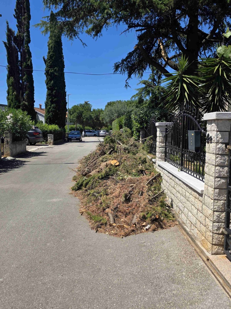 Dobar dan! U ulici Zorzetti nakon nevremena ostalo je puno grana i drva koja su ispiljena kako bi se spriječila veća šteta. Međutim, još uvijek nisu uklonjena, što otežava promet jer se sve nalazi na cesti, a teško je i izaći iz dvorišta. Svjesni smo da ima puno intervencija na drugim lokacijama, ali ova ulica je veoma prometna pa bismo voljeli da se očisti prije nego što se dogodi neki incident. Unaprijed zahvaljujemo i srdačan pozdrav.