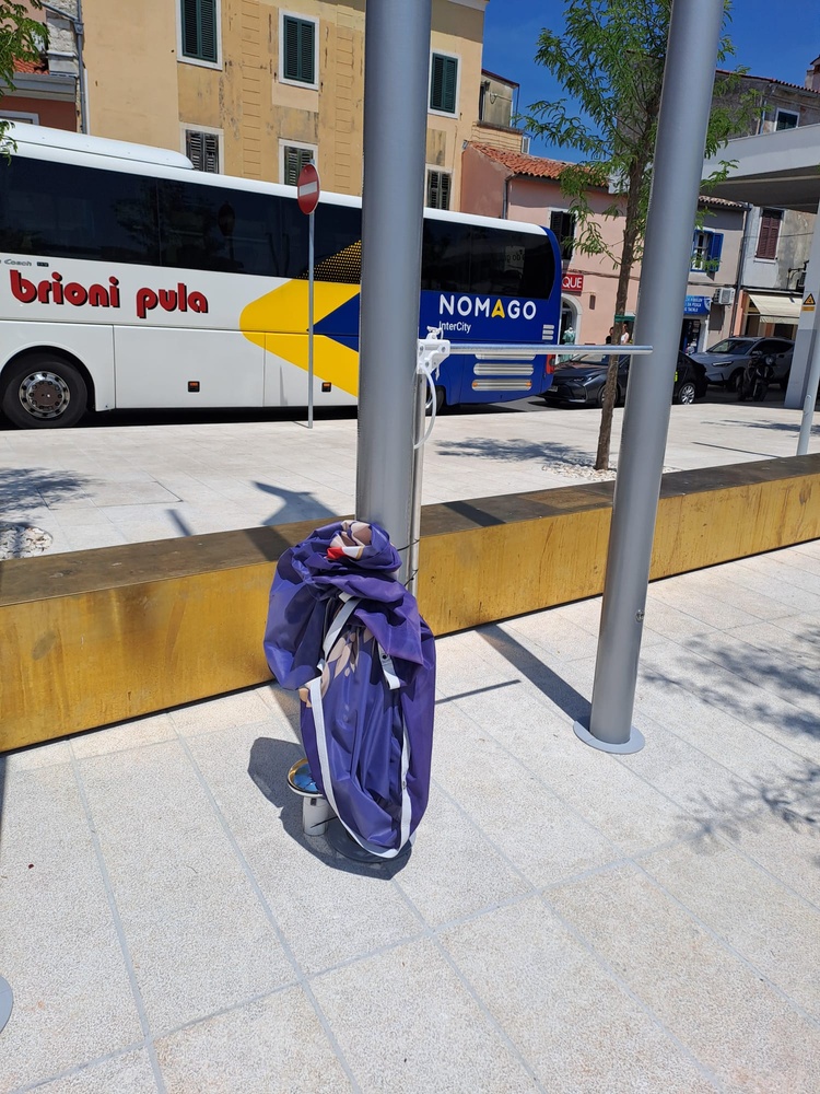 Zašto je gradska zastava zgužvana i zavezana na podu kod novog spomenika na lokvi? Je li tako bilo i jučer za praznik? Tko je zadužen za održavanje spomenika? Je li to Komunalni servis, kojem je trg neposredno ispred sjedišta? Nisam sigurna, samo postavljam pitanja, ima ih puno.