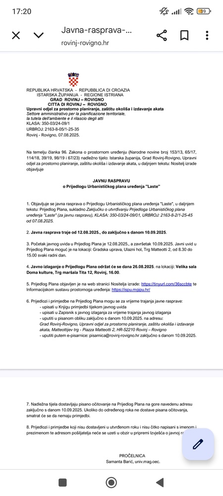 Poštovani, nažalost, ovakva pitanja i prijedloge nije moguće riješiti putem ovog portala. Predlažemo da se obratite pisanim putem nadležnim službama Grada Rovinja-Rovigno kroz službene kanale, kako bi Vaša prijava bila službeno zaprimljena i razmotrena.