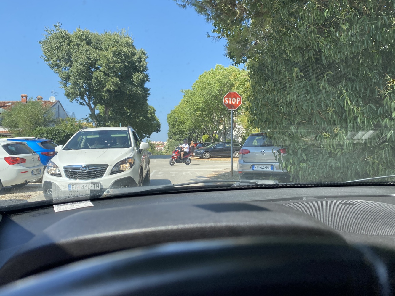Nepropisno parkiranje unutar javne zelene površine na samom križanju ugrožava sigurnost voznog i pješačkog prometa. Hitno je potrebno ukloniti nepropisno postavljen privatni kontejner za miješani otpad s te iste javne zelene površine.