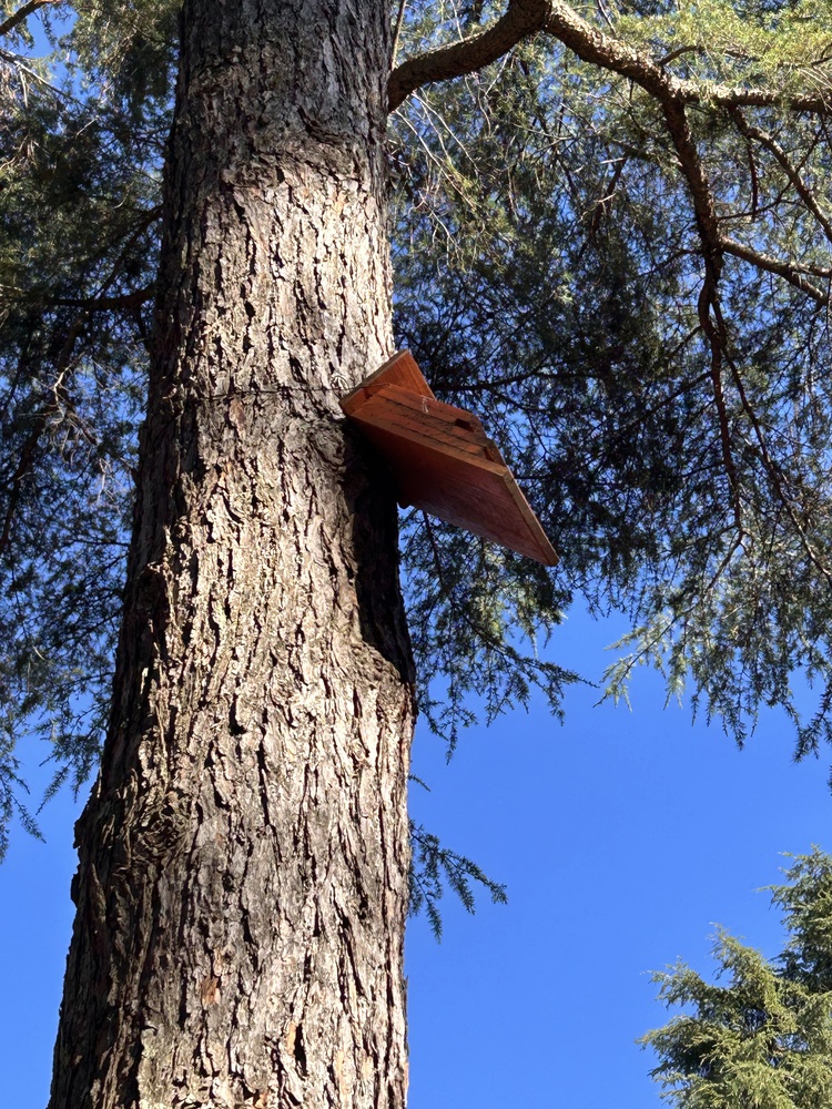 Poštovani, Kućica za šišmiše na Zlatnom rtu kod zvijezde cedrova u Rovinju nije dobro pričvršćena. Čini se da je žica koja drži donji dio kućice popustila, pa bi bilo poželjno da se kućica ponovno učvrsti kako bi bila korisna za šišmiše. Također želim pohvaliti što nisu korišteni čavli, no predlažem da se umjesto žice upotrijebi neki drugi deblji i mekši prirodni materijal. Važno je da kućica nije izložena suncu cijeli dan. Visina na kojoj je kućica postavljena je odgovarajuća. Četiri metra je dobra visina kako bi šišmiši imali dovoljno mjesta za uletjeti odozdo. Hvala i srdačan pozdrav!