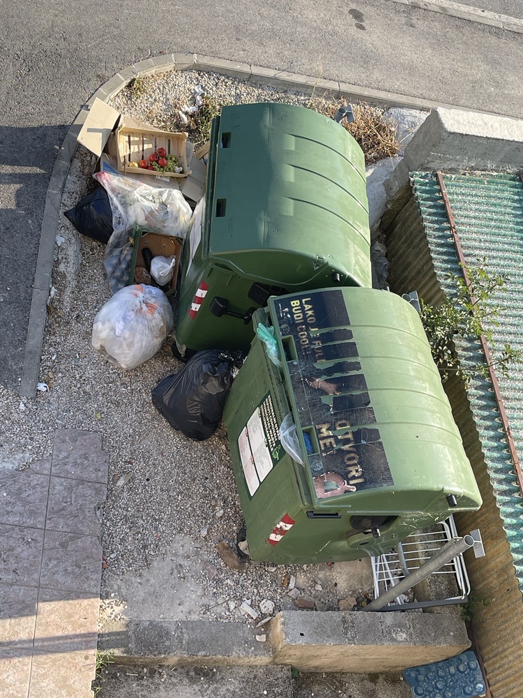 Poštovani, Možete li poduzeti nešto u vezi s ovom lokacijom? Odvoz otpada dva puta tjedno nije dovoljan tijekom sezone. Molimo vas da razmotrite mogućnost postavljanja novih, čistih kontejnera. Muhe, neugodni mirisi, ostaci mesa i povrća, kao i odlaganje otpada od strane nepoznatih osoba, stvaraju ozbiljan higijenski i zdravstveni problem. Imate li preporuke?