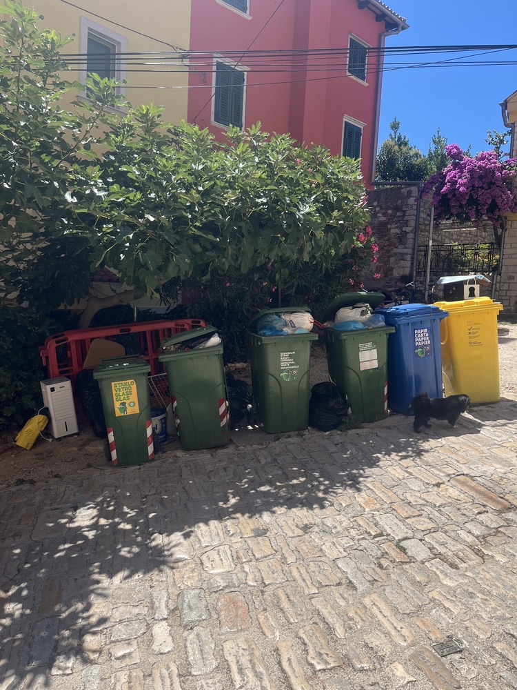 U podne su kante već prepune, a vreće se ostavljaju izvan kanti i za nekoliko minuta će ih mačke i galebovi početi raznositi po ulici. Zar stvarno ova ulica mora svakodnevno ovako izgledati? Zašto ne postavite kante i u drugim ulicama, umjesto da pola starog grada ovdje odlaže smeće?!