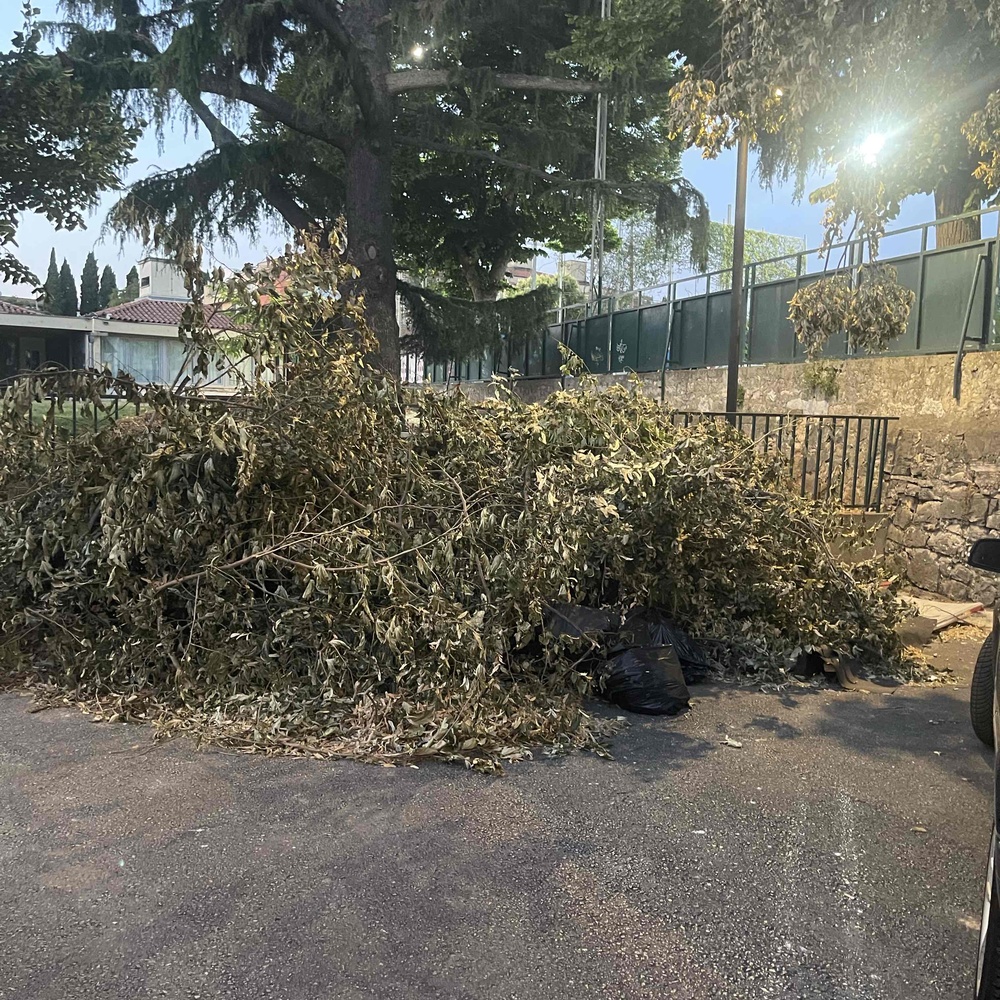 Treba ukloniti krovne panele, grane i lišće koje su vatrogasci uklonili iz talijanskog vrtića nakon nevremena 16. lipnja 2025. Također, potrebno je odrezati odlomljene i sada već suhe grane koje vise iznad parkirališta. Nevjerojatno je da ste jučer, 25. lipnja, radili isto sa strane rukometnog igrališta, kao da ova strana nije dio istog drva. Na moj upit, odgovorili ste da to radi druga grupa. Komentar je suvišan. Ovo je drugi put da vam se obraćamo zbog istog problema. Ulica Mattea Benussija 16 (dvorište uz ogradu talijanskog vrtića). Ugodan dan!