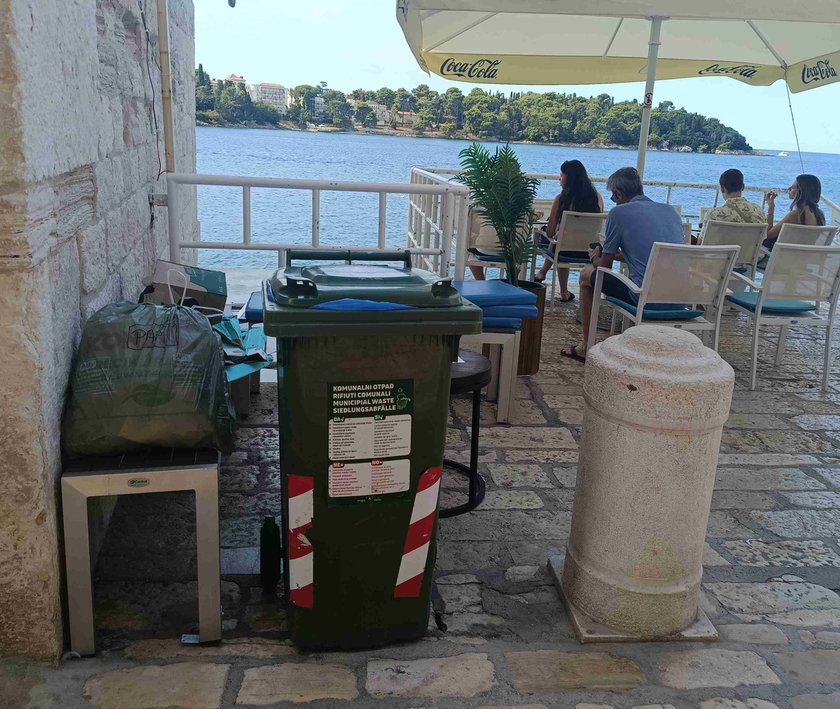 Šteta je da u ovako divnom gradu i još ljepšem lokalu s prekrasnim pogledom, smeće i dalje stoji na terasi u 10 ujutro. Barem u sezoni bi odvoz smeća trebao biti riješen prije nego se lokali otvore.