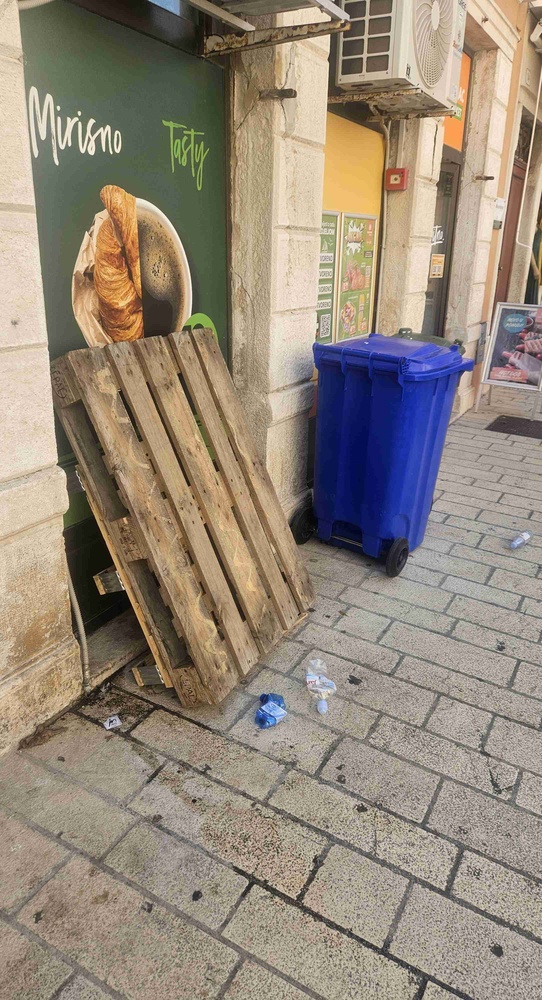 Molimo vas da netko opere ove smrdljive kante kod marketa Studenac. Već tri godine smrde. Smataju vam svakakve stvari, poput reklama ispred objekata, ali vas ne smetaju smrdljive kante i trotoar ispred Studenca koji nije opran već tri godine.