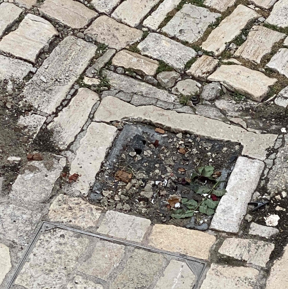 Odvod na trgu Piazza Grande je začepljen, pa voda ne otiče.